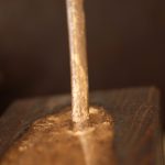 The base of the sculpture is a very old railroad track beam adding to it’s misticizem.