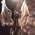 The sculpture begins with a wooden base at the bottom and then continues upwards with the horses muzzle and then with the head where it’s mane slowly dispersal into empty space adding a mystical quality to the sculpture where the light plays and shows the sculpture going from realism to abstract.