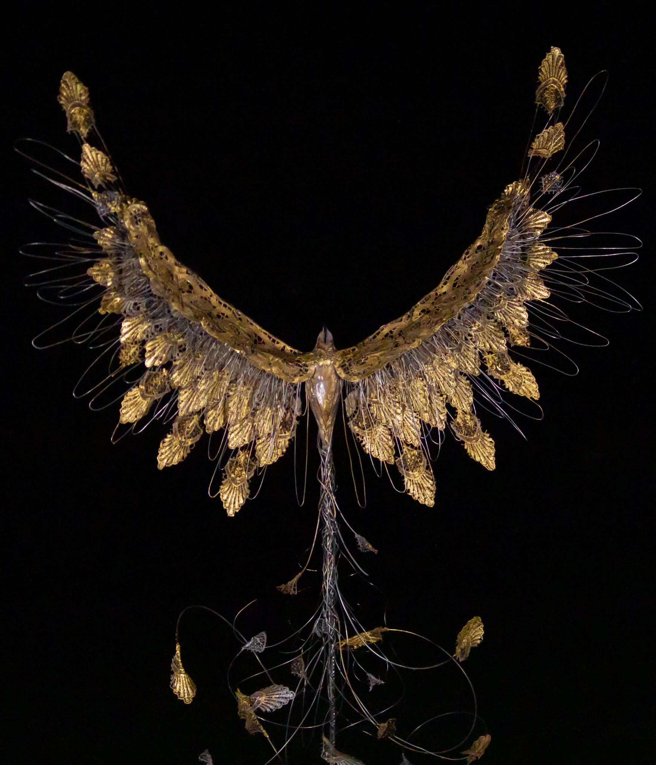 Auriel, the Phoenix of golden dust, is a messenger of the stars, a herald of the boundless energy that permeates the universe. His winged form, both delicate and mighty, symbolizes the ancient connection between earth and sky, between the visible and the invisible.